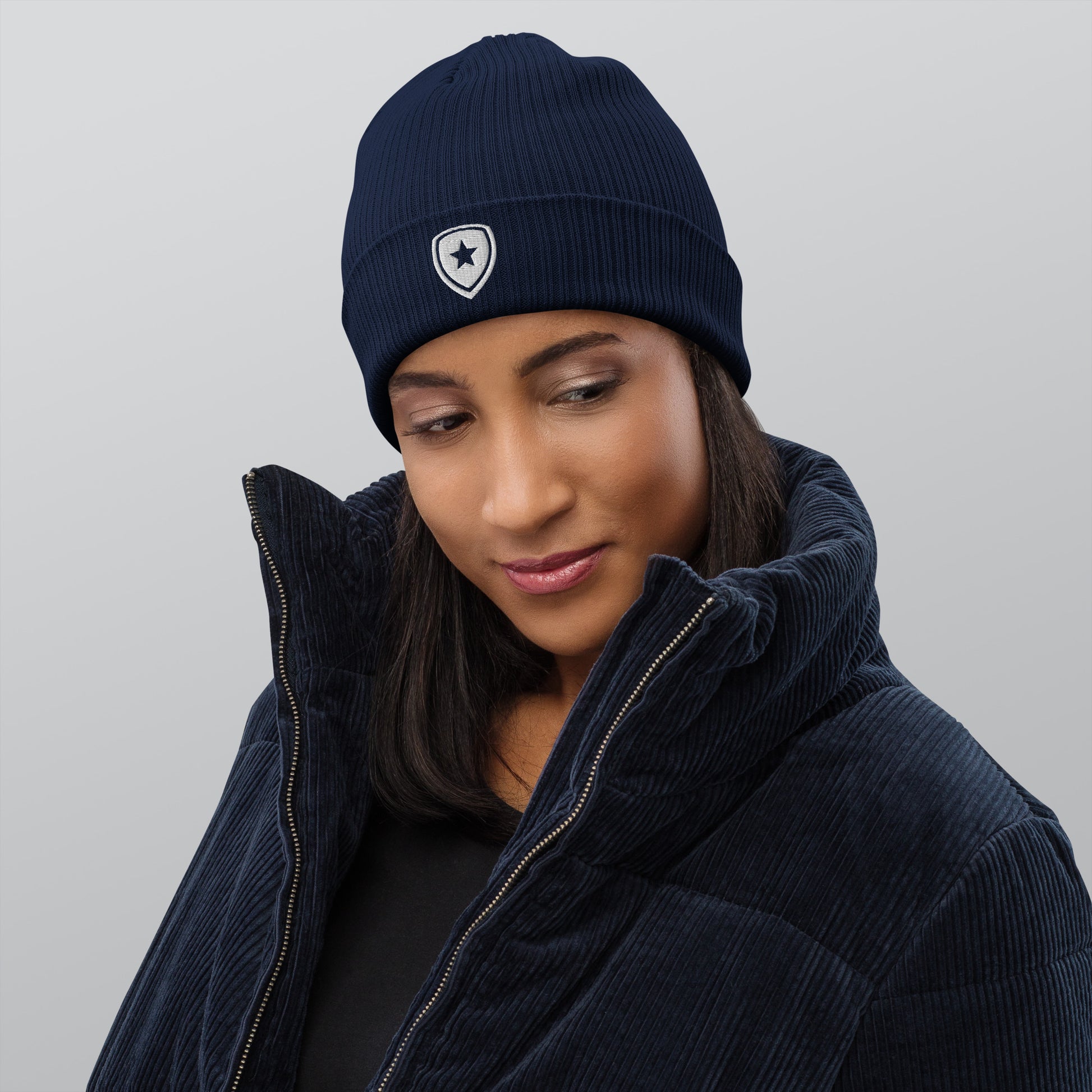 100% Organic Ribbed Beanie Blue